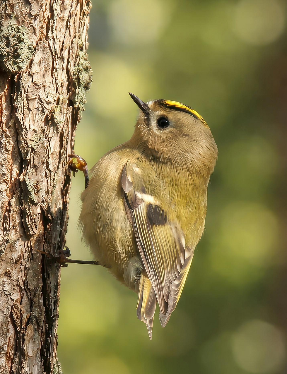 but only short distances. Life in the boreal forest is difficult, and many birds wouldn’t survive the extreme winters, choosing to migrate south over the North Sea to the warmer climate of the UK. Reggie knew this was going to be a problem, flying south with a damaged wing was impossible, but staying in the boreal forest through the winter would be certain death for the little Goldcrest. Goldcrest (Regulus regulus)